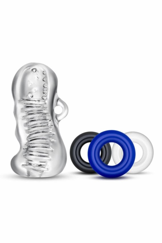Blush Quickie Kit - Zestaw Sleeve z Wypustkami i 3 Pierścieniami 3,5 cm