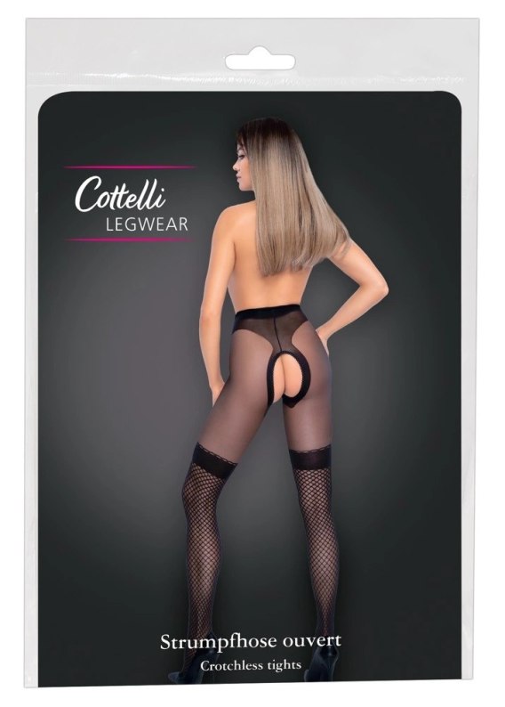 Cottelli LEGWEAR rajstopy z siateczką, czarne, otwarty fason, 30 den