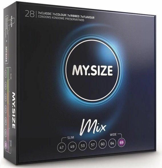 MY.SIZE Mix prezerwatyw 69 mm 28 szt. zestaw rożnorodnych wariantow