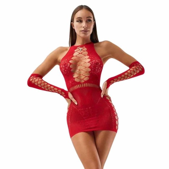 Ten wyrazisty bodystocking przyciąga uwagę swoją odważną formą i seksownym wycięciem z przodu.