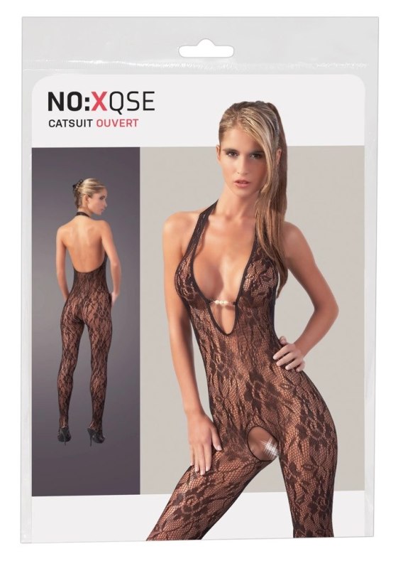 NO:XQSE Kombinezon siateczkowy S/M z perłami i uchwytem na szyję