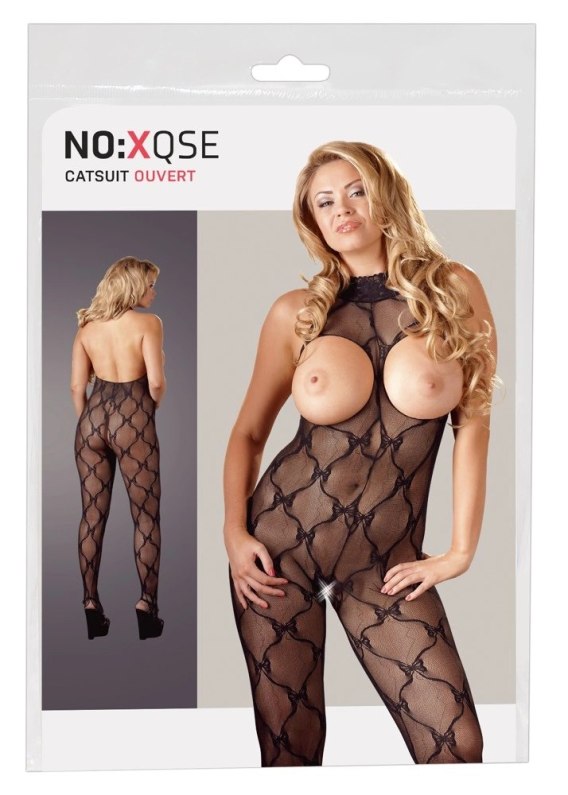 NO:XQSE Koronkowy kombinezon z odkrytym biustem i kroczem czarny XL-XXL to propozycja dla osob poszukujących stylowego stroju o wyjątkowym kroju. Model został wykonany z wysokiej jakości, elastycznej koronki o efektownym wzorze, ktora subtelnie przylega do sylwetki, podkreślając jej atuty. Stroju dopełnia funkcjonalny halter zapinany na szyi, ktory można łatwo otworzyć dzięki praktycznemu zapięciu na rzep. Otwarty fason w okolicach biustu i krocza zapewnia wygodę oraz niebanalny charakter. Kombinezon posiada zabudowane stopy, dzięki czemu całość prezentuje się niezwykle elegancko i spojnie.