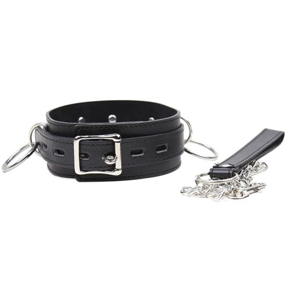 OHMAMA Fetish - Naszyjnik z 3 pierścieniami, skorzany, regulowany