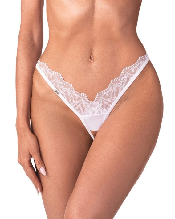 Obsessive Arrowel String 2XL/3XL - biały, z koronkowymi detalami, bezszwowy