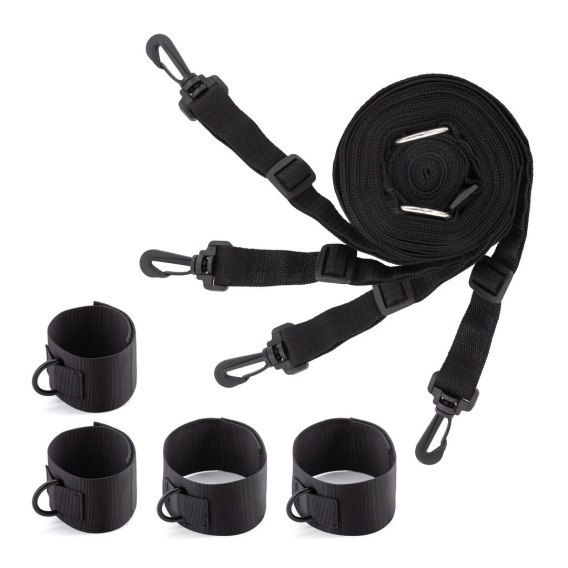 Zestaw doskonale sprawdzi się jako element wzbogacający wspolne chwile, umożliwiając nowy sposob interakcji i zapewniając pełną kontrolę nad ustawieniem pasow. Uniwersalny rozmiar oraz regulowana długość sprawiają, że model pasuje zarowno do dużych, jak i mniejszych łożek. System pasow jest prosty do ukrycia pod materacem, co pozwala na szybkie przygotowanie łożka do standardowego użytku.