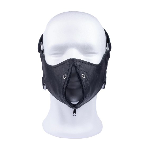 Red Leather Mask Anatomiczna Skorzana z Suwakiem Czarna Regulowana