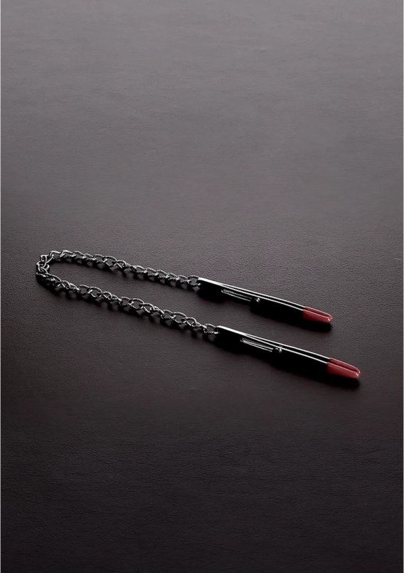 Steel Deluxe - Zacisk kleszczykowy z łańcuchem, regulacja nacisku 11,5 cm to profesjonalny akcesorium przeznaczony do zastosowań intymnych oraz kolekcjonerskich. Precyzyjna konstrukcja oraz zastosowanie wysokiej jakości materiałow sprawia, że model ten wyrożnia się na tle innych produktow dostępnych na rynku.