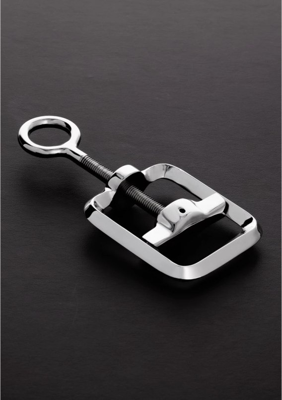 Steel - Metalowy ogranicznik i naciągacz z regulacją śrubową to wytrzymałe akcesorium przeznaczone do precyzyjnej kontroli nacisku oraz rozciągania. Wykonany z wysokiej jakości stali nierdzewnej, model ten wyrożnia się solidną konstrukcją, łatwą obsługą oraz możliwością dokładnego dostosowania siły działania. Za sprawą prostego w użyciu mechanizmu śrubowego użytkownik może bez trudu regulować poziom nacisku oraz rozciągnięcia, a także szybko uwolnić urządzenie poprzez obrot śruby w przeciwnym kierunku.