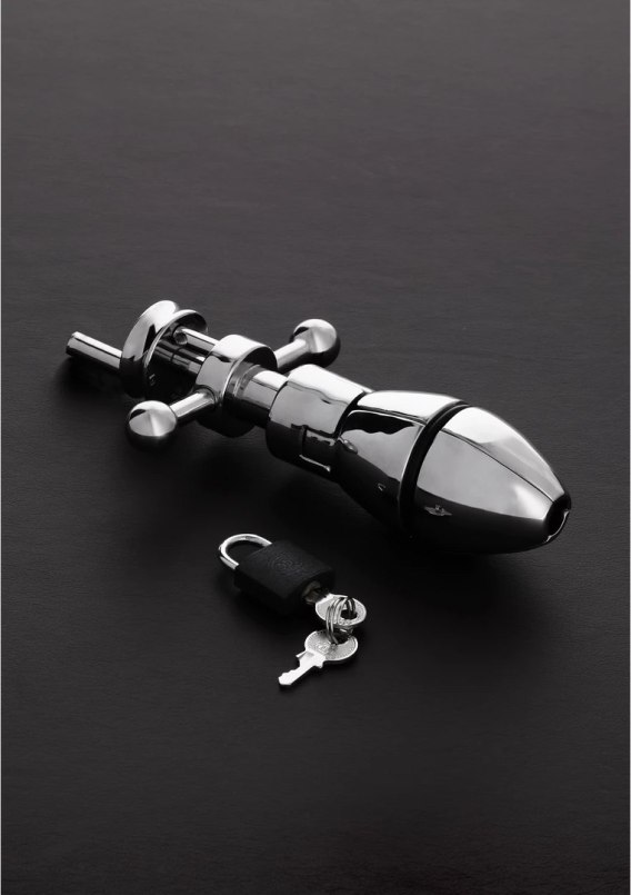 Steel Ultimate Asslock to zaawansowany model służący do kontroli i zabezpieczenia w zastosowaniach intymnych. Wykonany z wysokiej jakości stali nierdzewnej, wyrożnia się solidnością, precyzją wykonania oraz innowacyjnym mechanizmem rozszerzania i blokady.