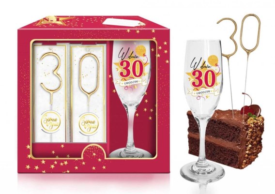 URODZINOWA STARS MAGENTA - zestaw kieliszek do szampana + zimne ognie - W dniu 30 urodzin