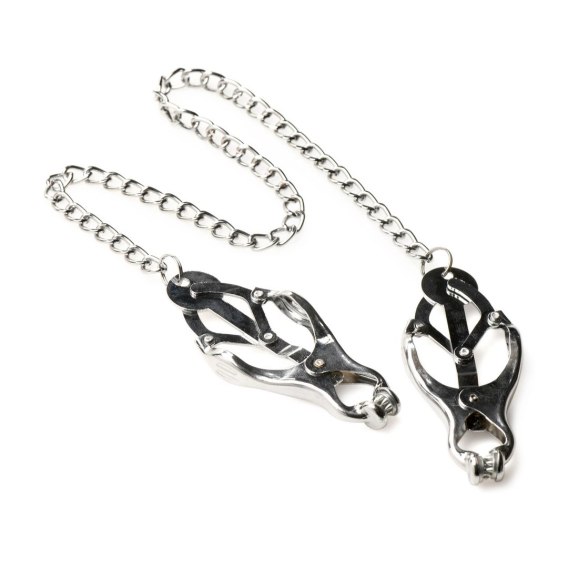 XR Brands Tyrant Clover to specjalistyczny zestaw metalowych zaciskow w kształcie koniczyny, zaprojektowany do precyzyjnego uścisku. Model ten wyrożnia się obecnością zaokrąglonych, metalowych wypustek oraz wytrzymałym łańcuszkiem, ktory umożliwia łatwe łączenie i manipulowanie zaciskami. Konstrukcja w całości wykonana jest ze stali nierdzewnej, pozbawionej niklu, co czyni ją odpowiednią nawet dla osob o wrażliwej skorze.