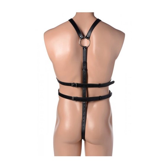 XR Brands uprząż męska do ciała z regulacją i podwojnymi pierścieniami